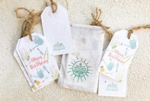 Choose tags embedded with wildflower or herb seeds so they bloom after planting. Write your message with soy-based ink to keep the entire tag compostable.